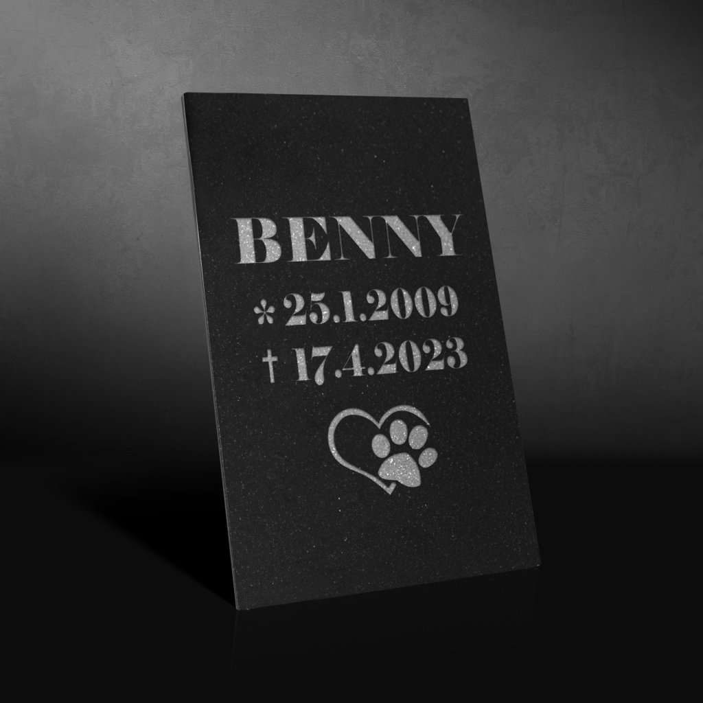 - Elegantný dizajn: Jemný lesk a hlboká čierna farba žuly pridávajú každému pomníku dotyk elegancie, čím vytvárajú dôstojnú pamiatku pre vášho milovaného domáceho priateľa