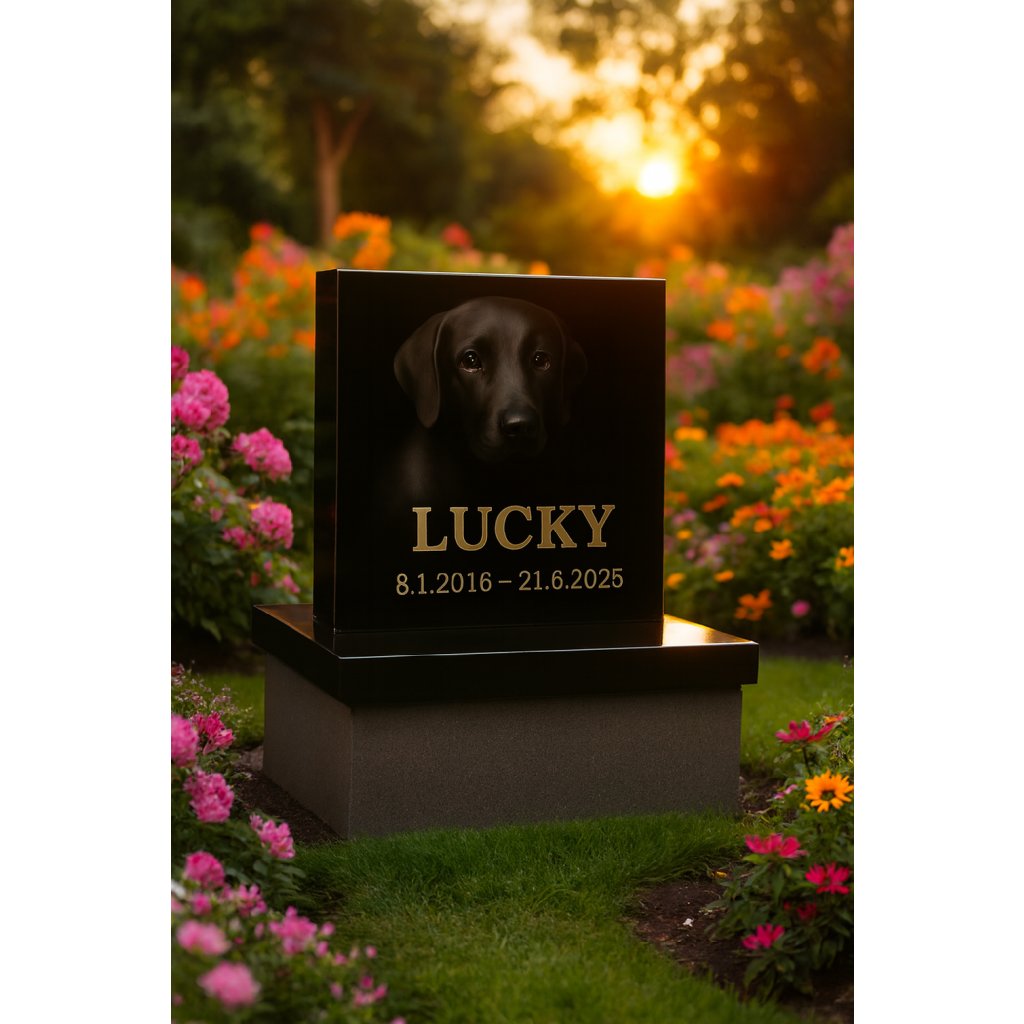 Záhradný hrob s pomníkom pre domáceho miláčika – Absolute Black