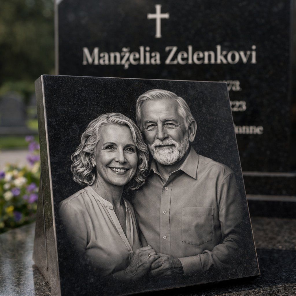 Kompaktná tabuľka s gravírovanou fotografiou je ideálna najmä v prípadoch, keď sa portréty už nezmestia na existujúci pomník alebo náhrobný kameň. Vďaka praktickému formátu umožňuje umiestniť dva portréty spolu na jednom mieste.